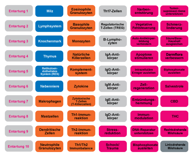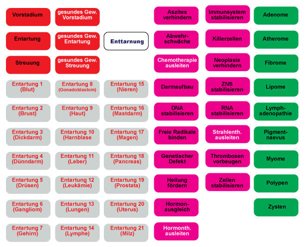 Gerade bei entarteten Zellen ist das Phänomen „Apoptose“ von besonderer Bedeutung: Die entarteten Zellen bekommen nämlich diesen Anstoß nicht und können deshalb ungebremst wuchern. Mit Hilfe der Ampullen in diesem Testkasten ist es möglich, diese Zellen energetisch zu „markieren“ und das gesunde Gewebe so zu stabilisieren, dass das körpereigene Immunsystem diese Zellen wiedererkennt und das Absterben dieser Zellen einleitet.