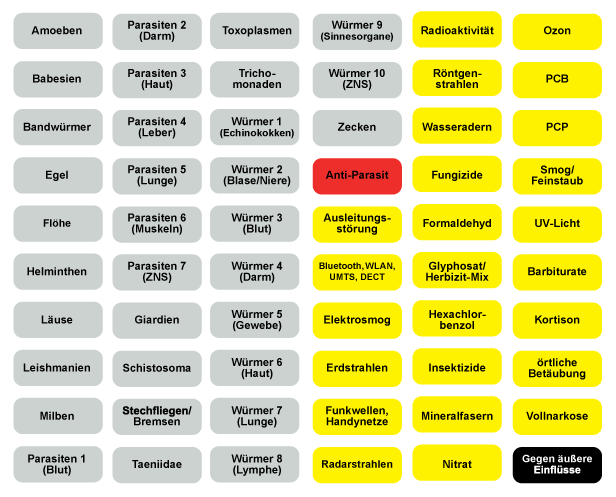 Dieser Testkasten darf in keiner energetisch ausgerichteten Praxis fehlen! Belastungen mit Parasiten, Würmern oder Umweltbelastungen werden immer noch viel zu häufig unterschätzt. Wir energetisch denkenden und handelnden Therapeuten aber wissen, wie massiv eine Belastung mit Würmern, Parasiten, Wasseradern oder Elektrosmog einen Organismus schwächen kann.